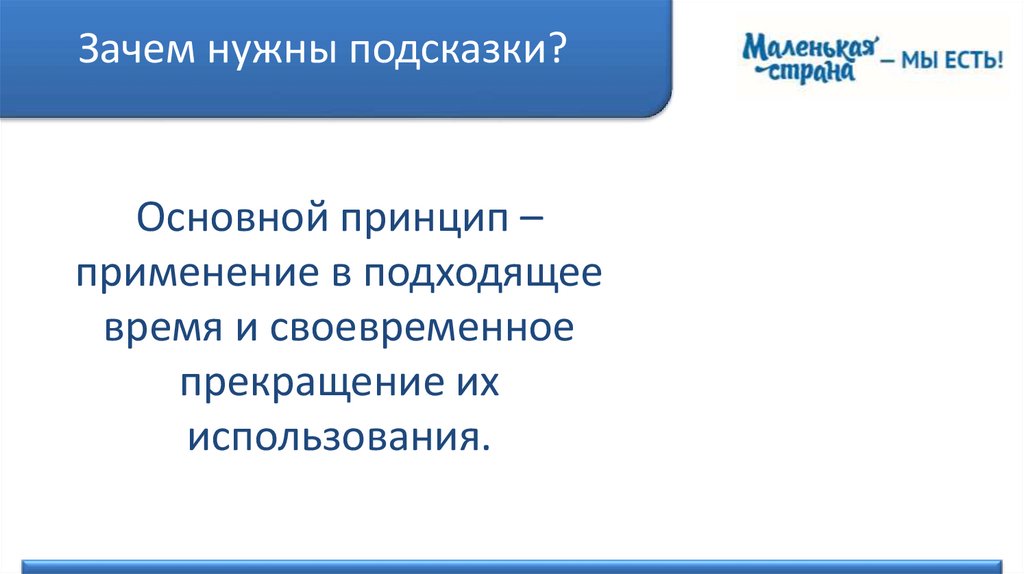 Зачем нужны подсказки?Основной принцип –