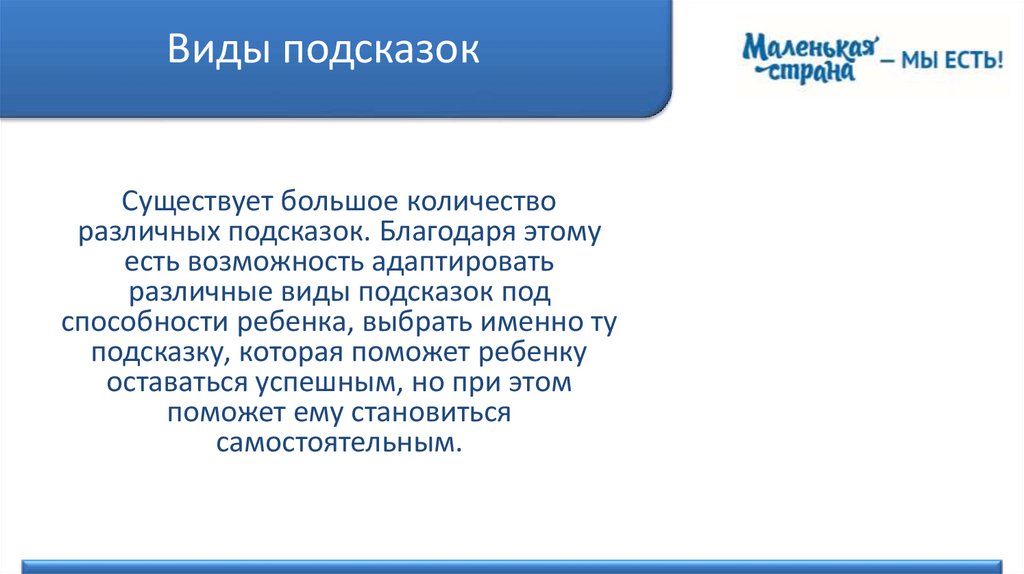 Виды подсказокСуществует большое количество