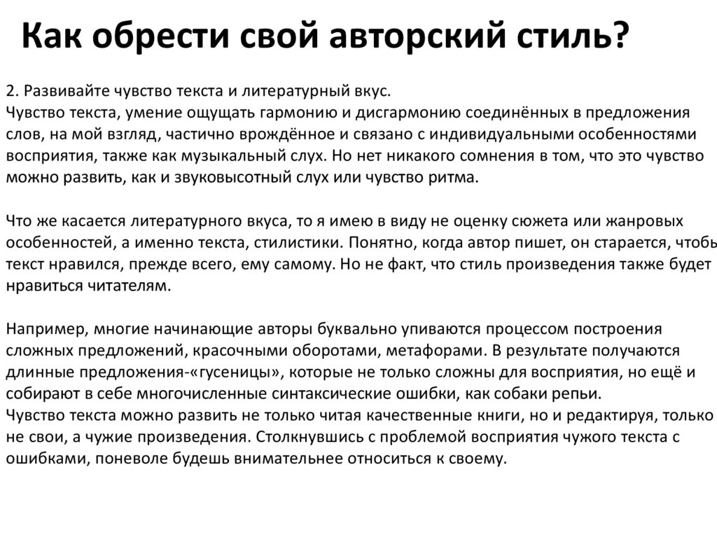 Как обрести свой авторский стиль?2. Развивайте чувство текста и литературный вкус.