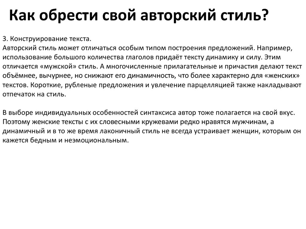 Как обрести свой авторский стиль?3. Конструирование текста.