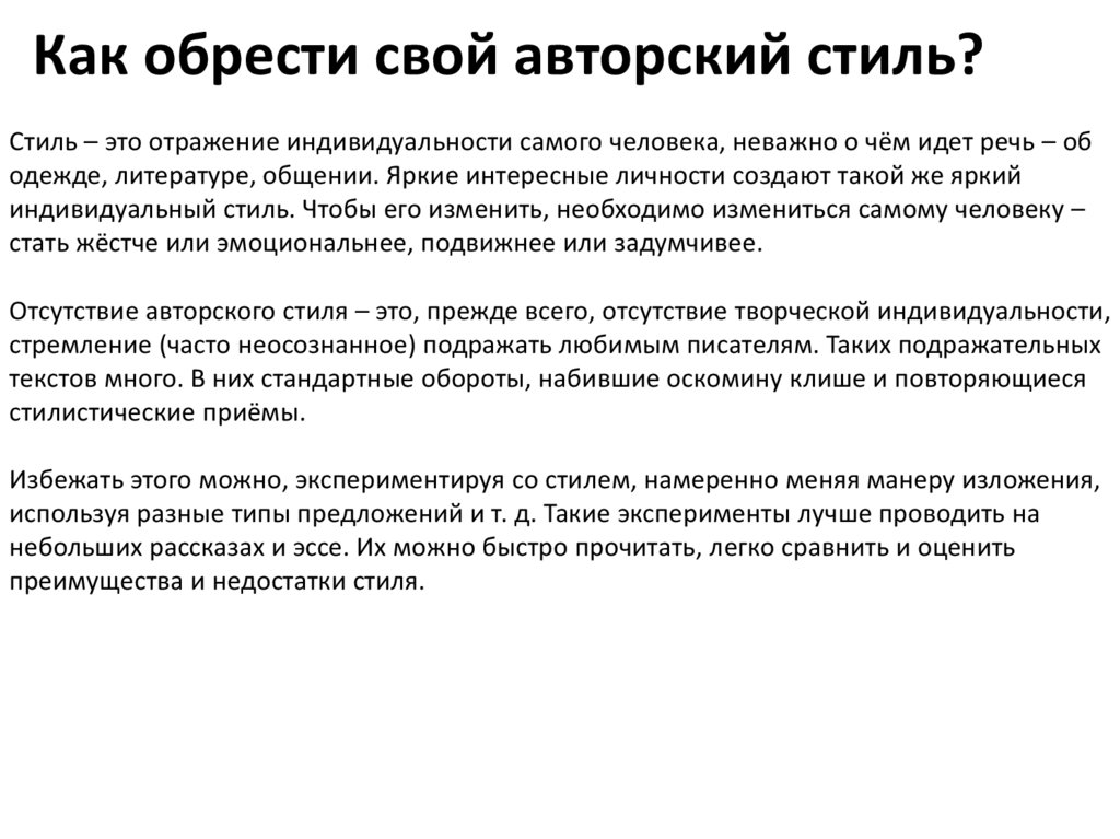 Как обрести свой авторский стиль?Стиль – это отражение индивидуальности самого человека, неважно о чём идет речь – об
