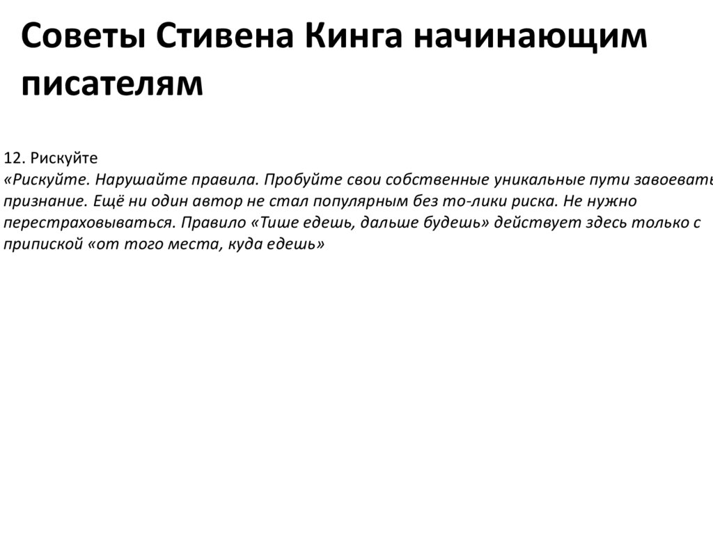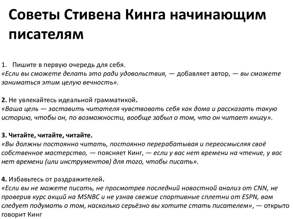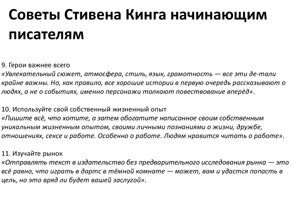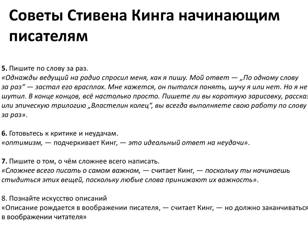 К опыту Кинга стоит прислушаться всем, а молодым людям – особенно. Пусть любые