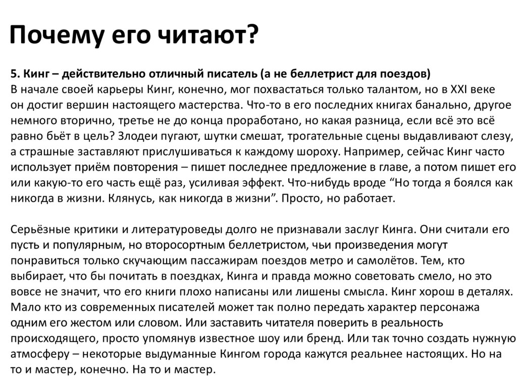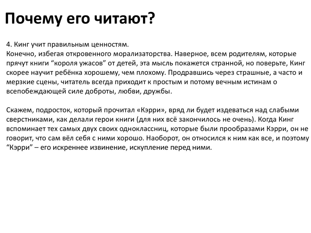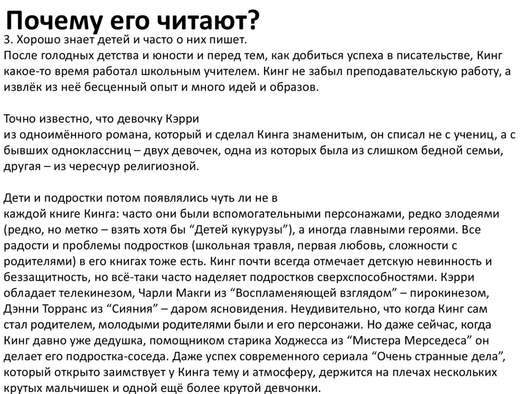 Почему его читают?2. Кингу есть что рассказать подросткам.