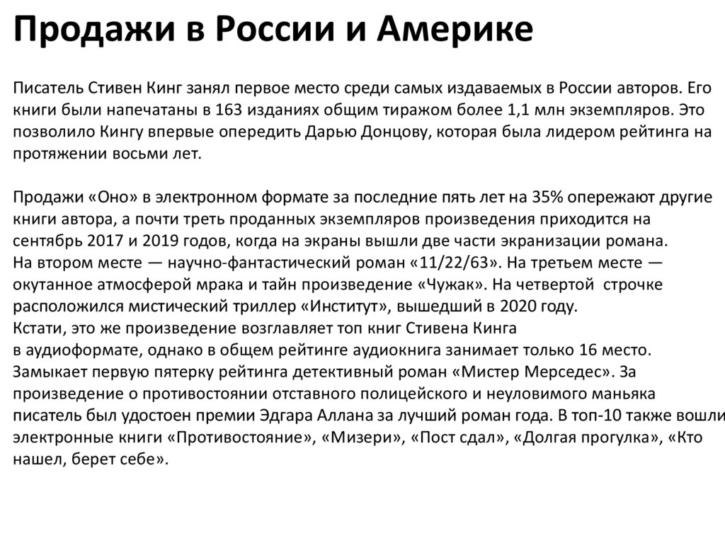 прозвище «Король ужасов». Продано более 350 миллионов экземпляров его книг, по