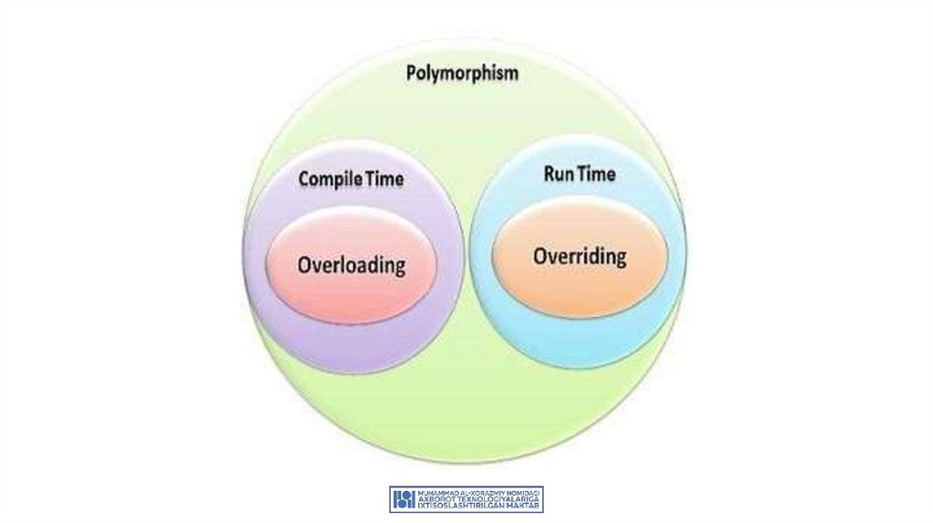 Polymorphism so’zi turli ma’nolarda qo’llaniladi va u biror narsa yoki