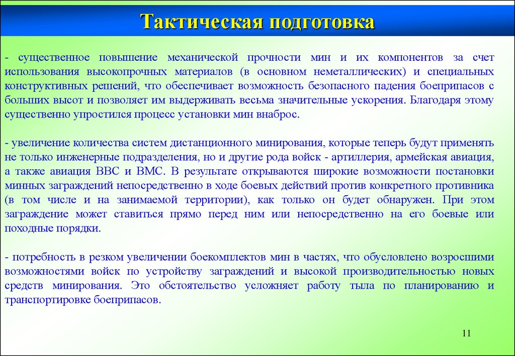 Тактическая подготовка- существенное повышение механической прочности мин и их компонентов за счет