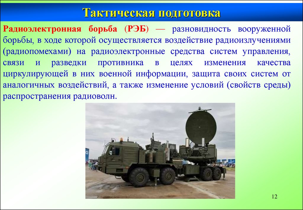 Тактическая подготовкаРадиоэлектронная борьба (РЭБ) — разновидность вооруженной