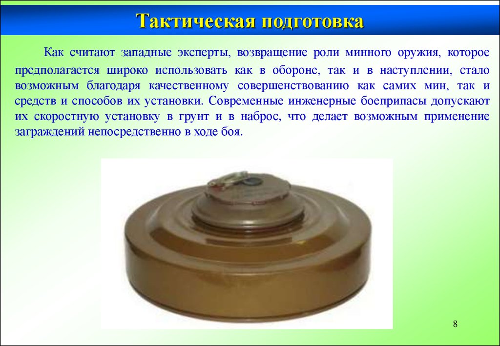 Тактическая подготовкаКак считают западные эксперты, возвращение роли минного оружия, которое