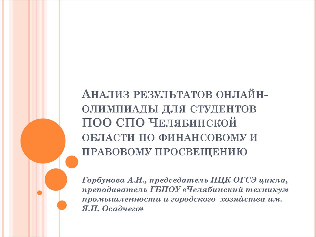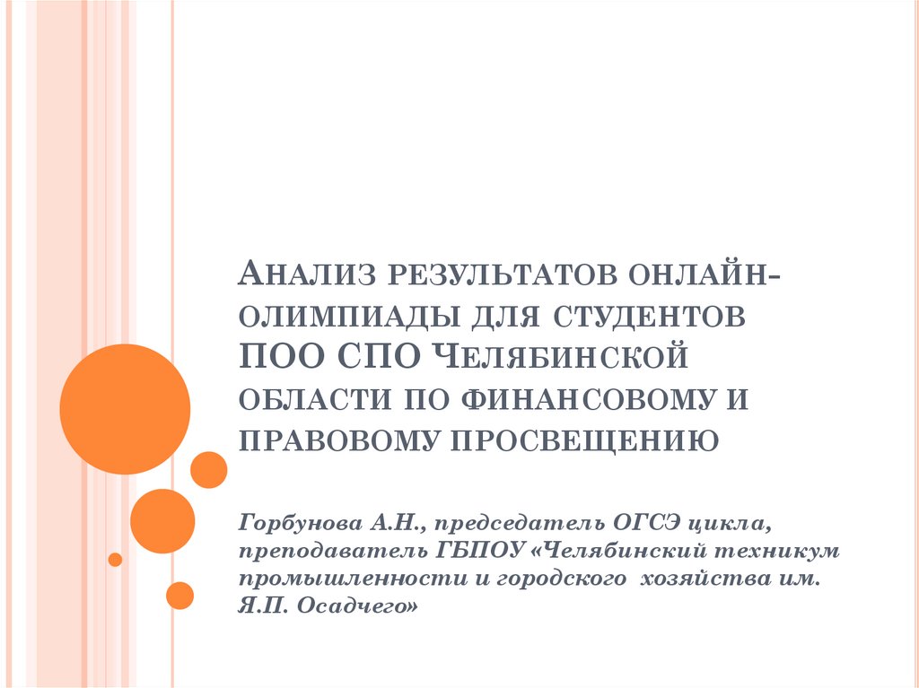 АНАЛИЗ РЕЗУЛЬТАТОВ ОНЛАЙНОЛИМПИАДЫ ДЛЯ СТУДЕНТОВПОО СПО ЧЕЛЯБИНСКОЙ