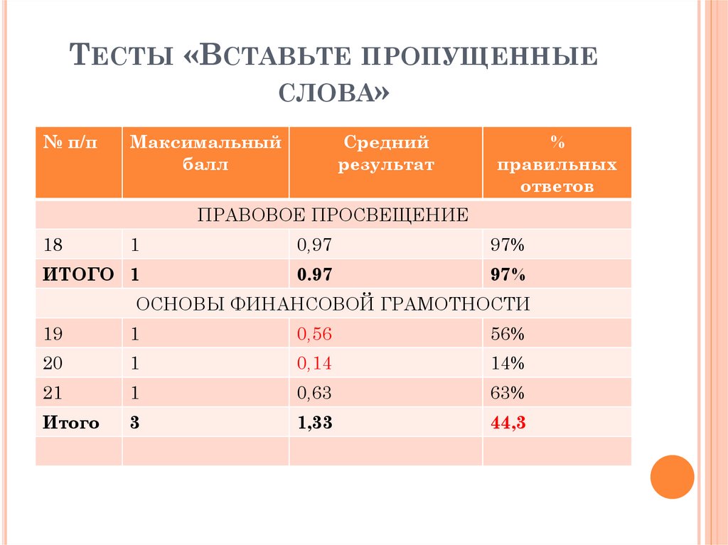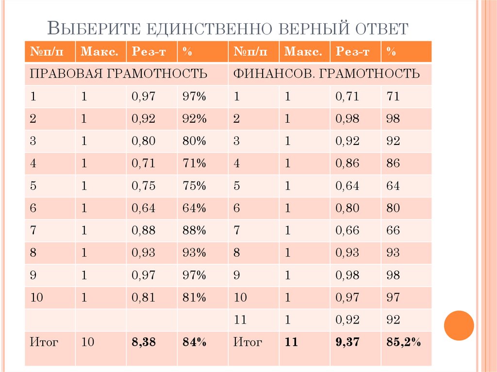 АНАЛИЗ РЕЗУЛЬТАТОВПРАВОВОЙ