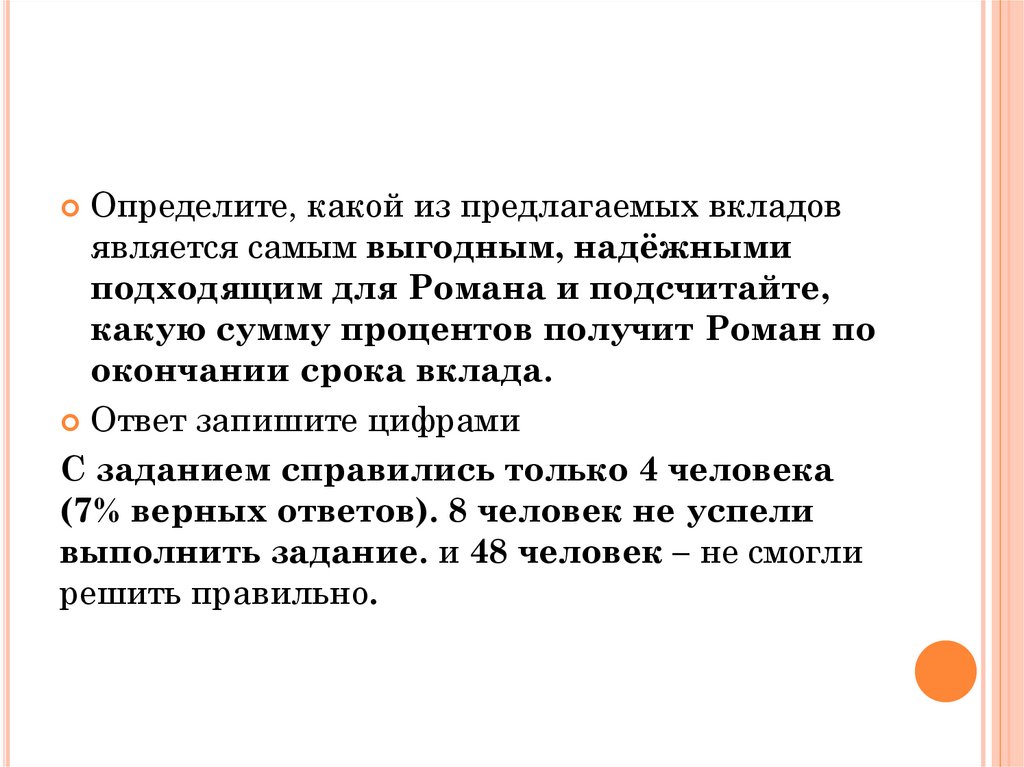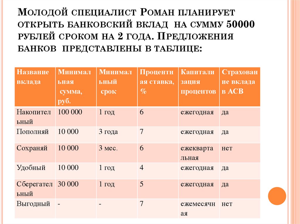 Определите, какой из предлагаемых вкладовявляется самым выгодным, надёжными