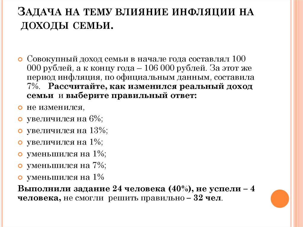 ЗАДАЧА НА ТЕМУ ВЛИЯНИЕ ИНФЛЯЦИИ НАДОХОДЫ СЕМЬИ.