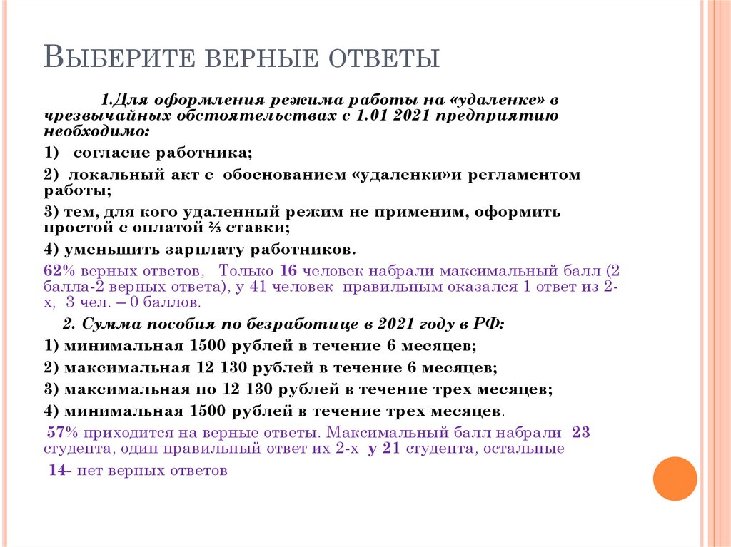 ВЫБЕРИТЕ ВЕРНЫЕ ОТВЕТЫ1.Для оформления режима работы на «удаленке» в