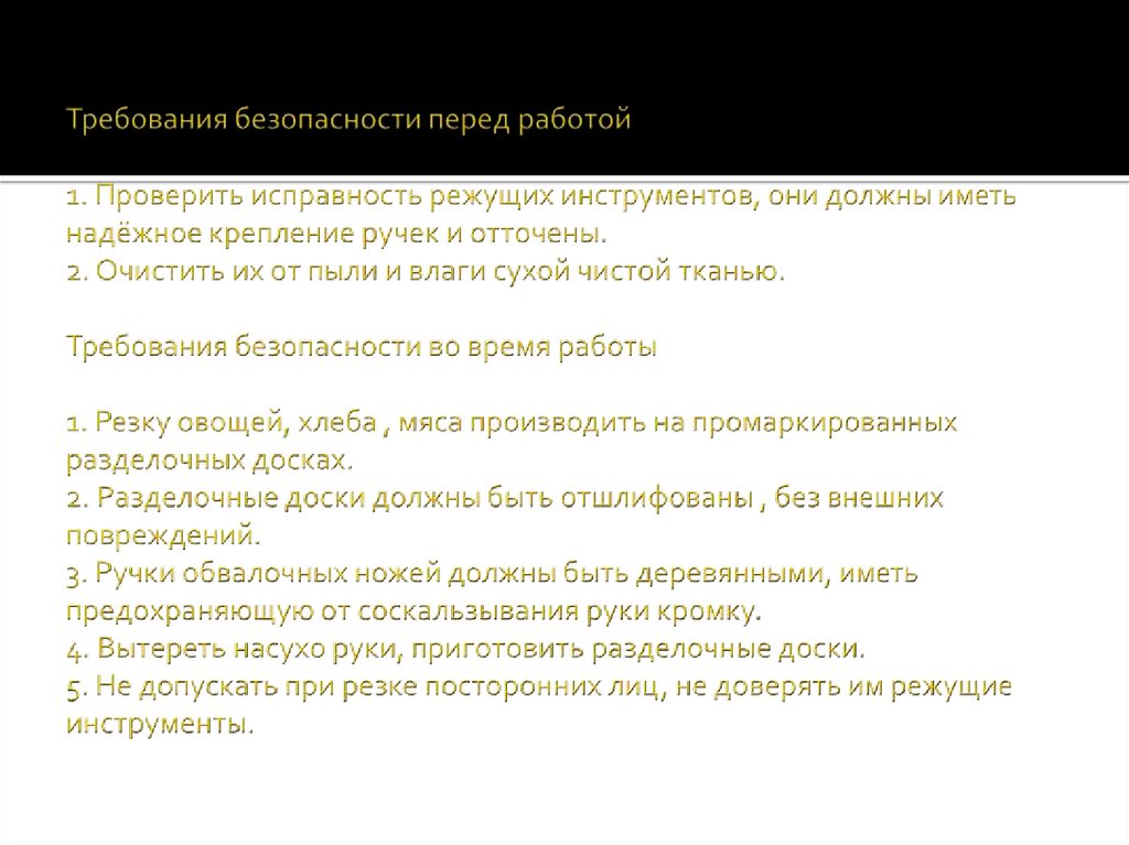 Меры безопасности при работе с режущим инструментом