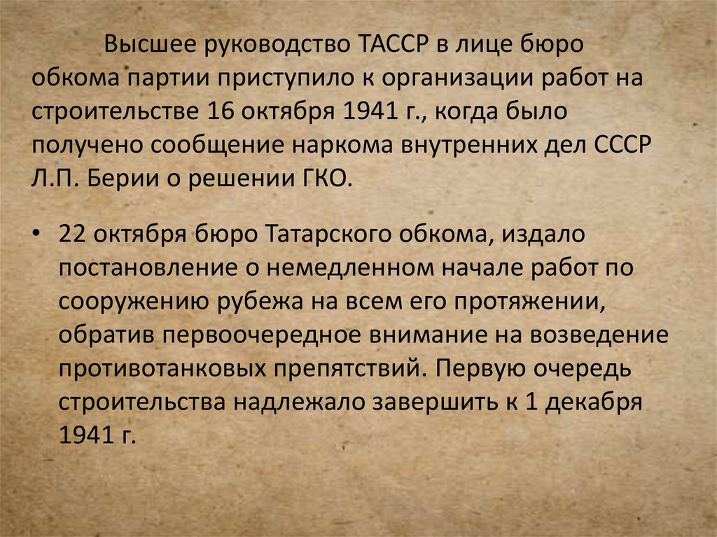 Высшее руководство ТАССР в лице бюрообкома партии приступило к организации работ на