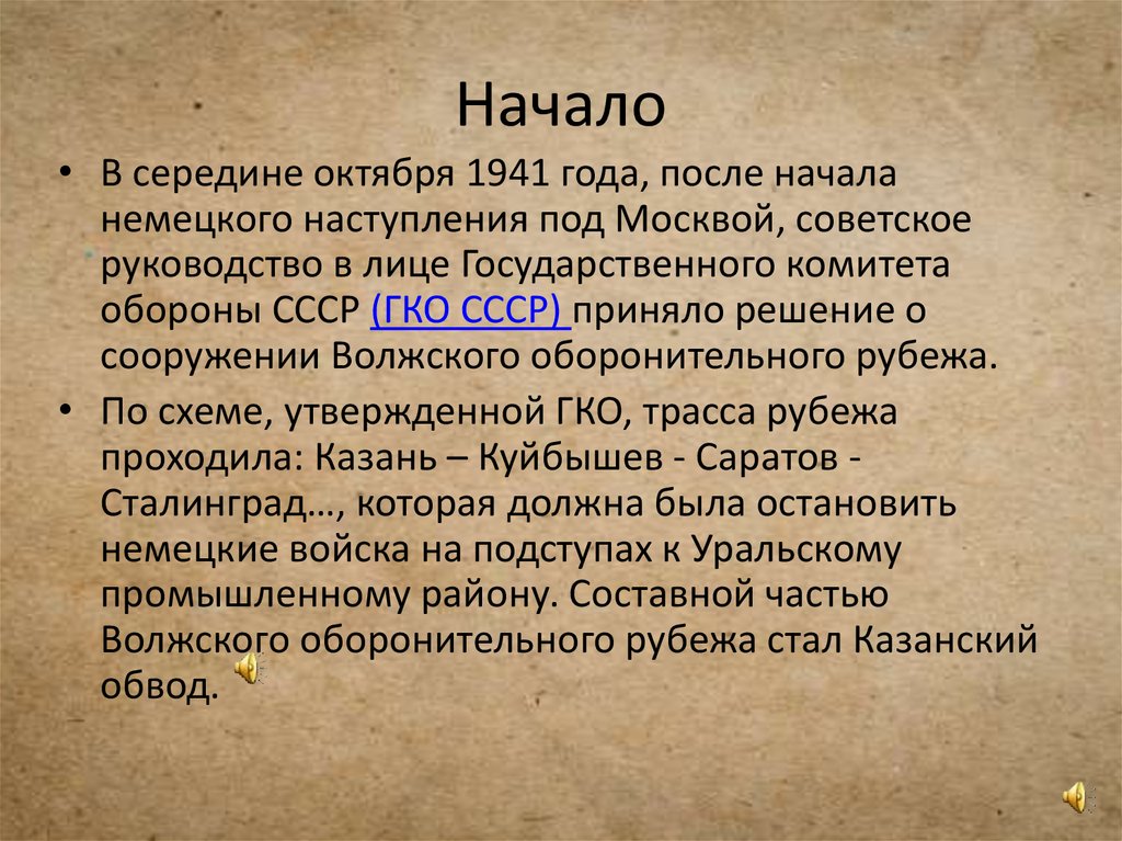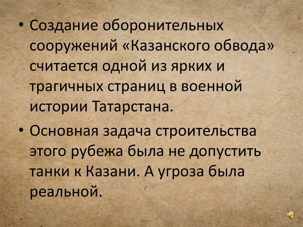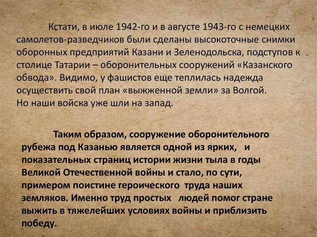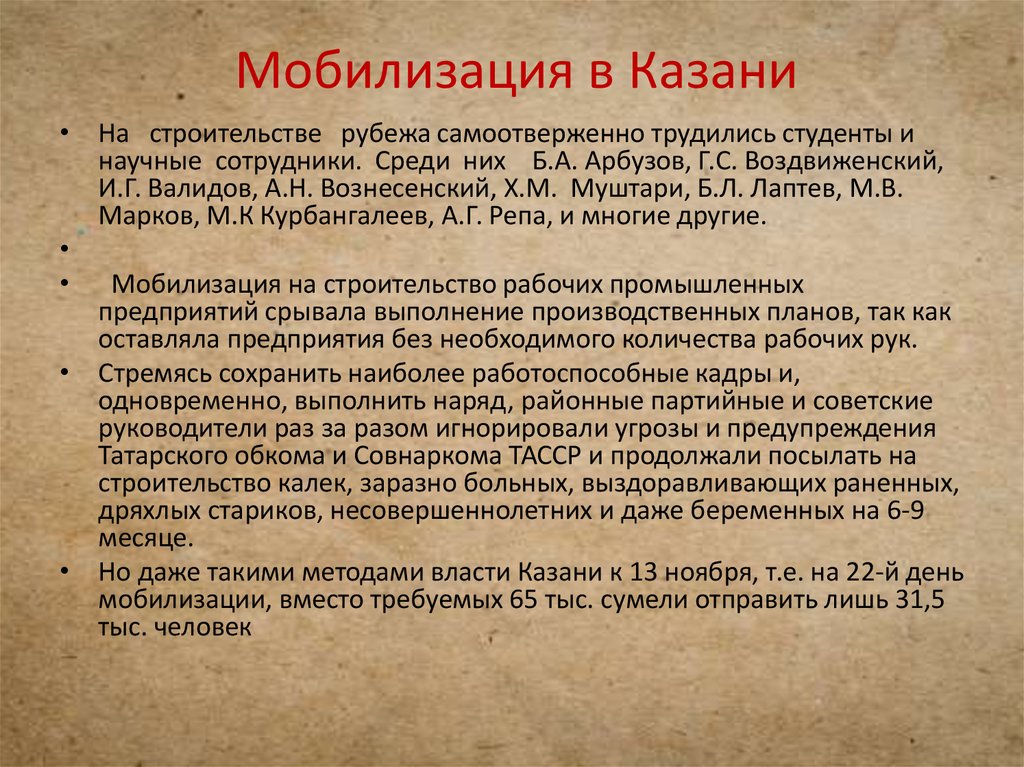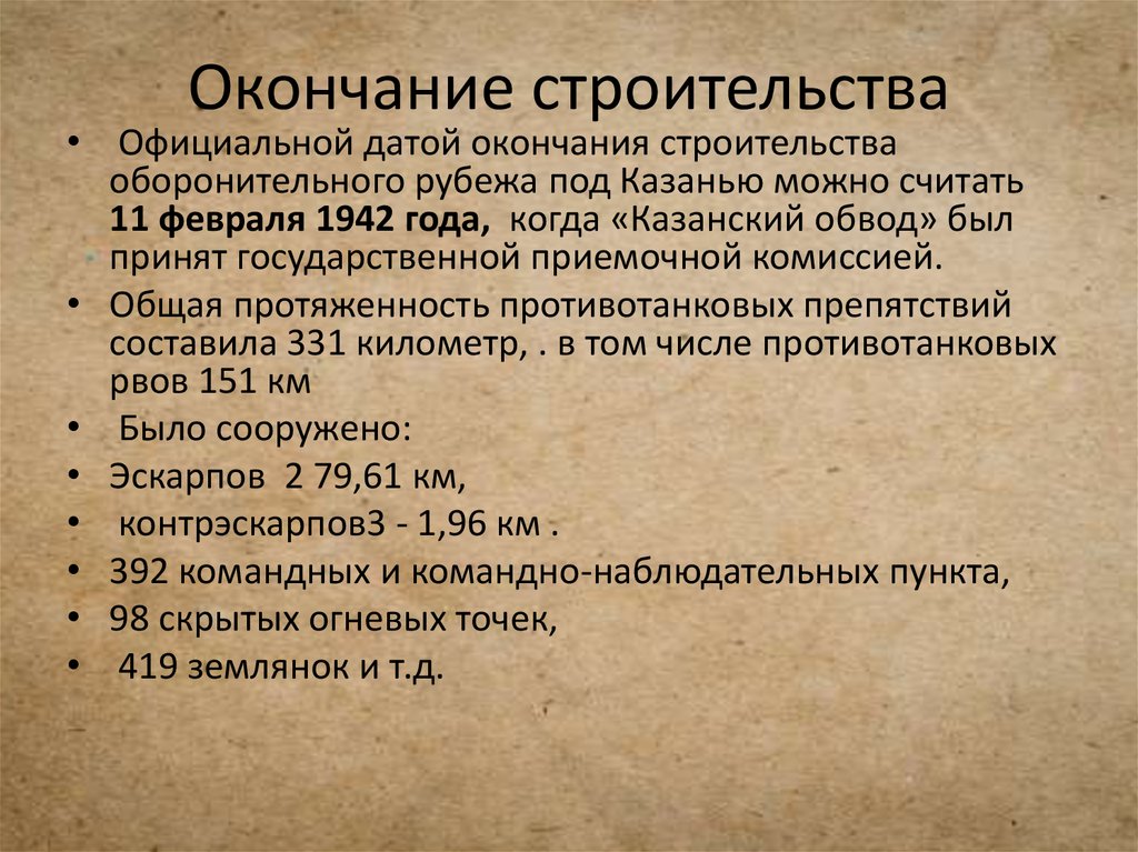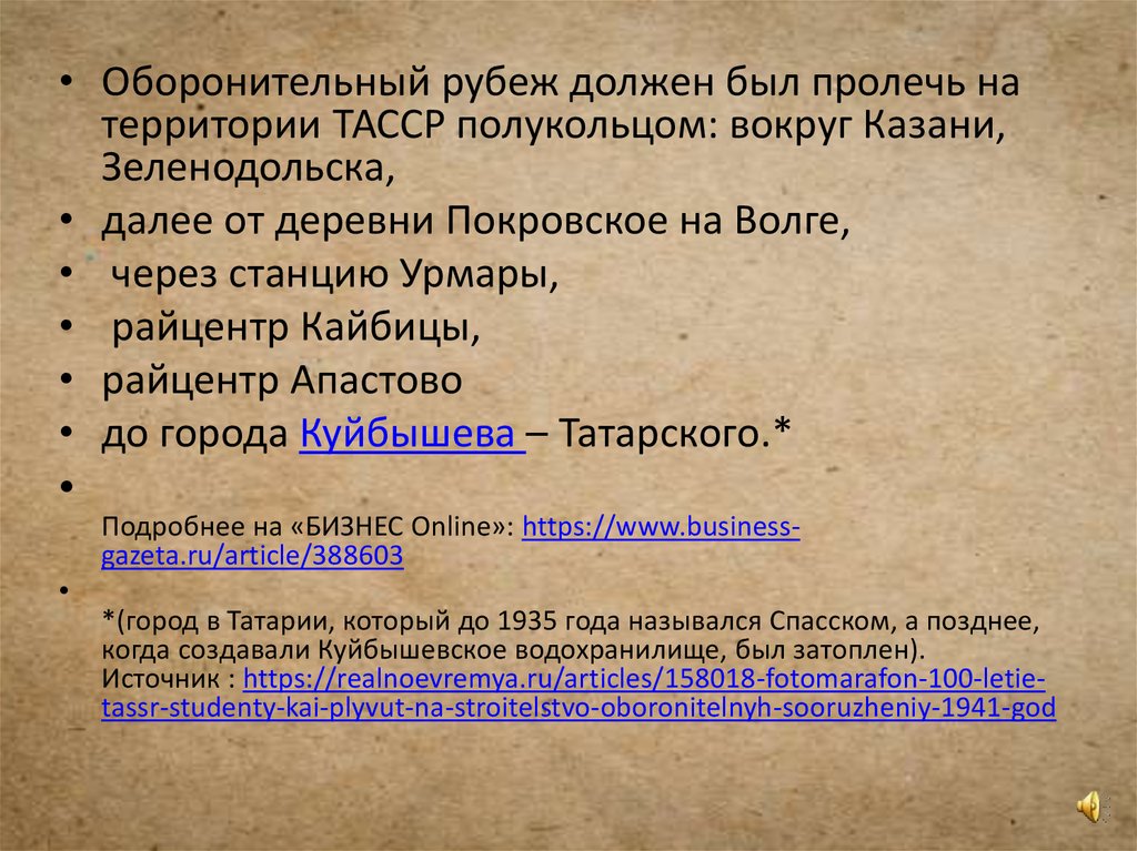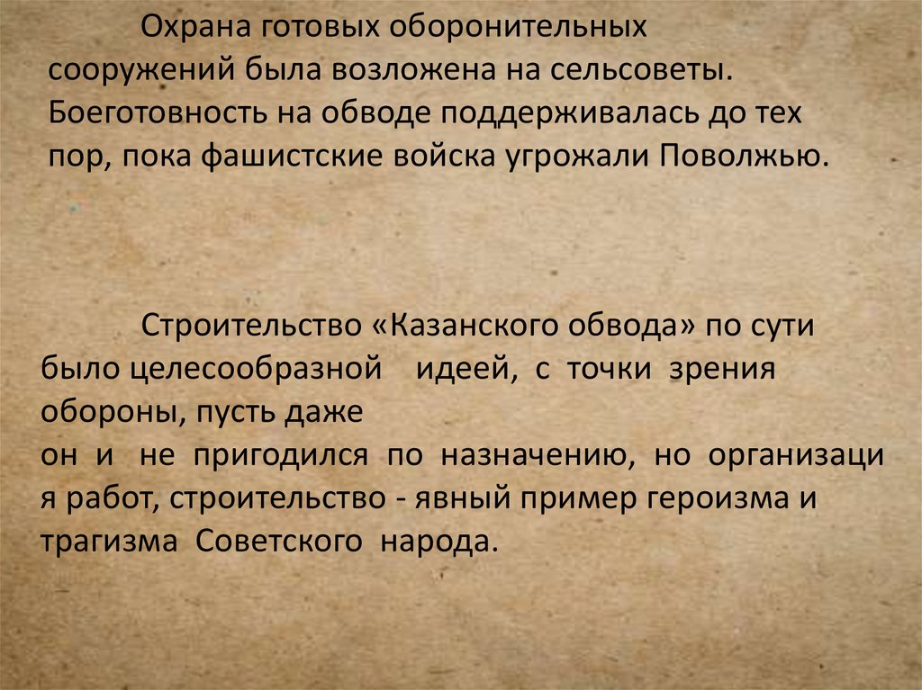 • Оборонительный рубеж должен был пролечь натерритории ТАССР полукольцом: вокруг Казани,