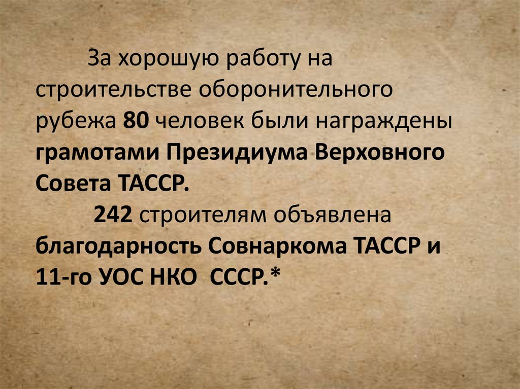 За хорошую работу настроительстве оборонительного