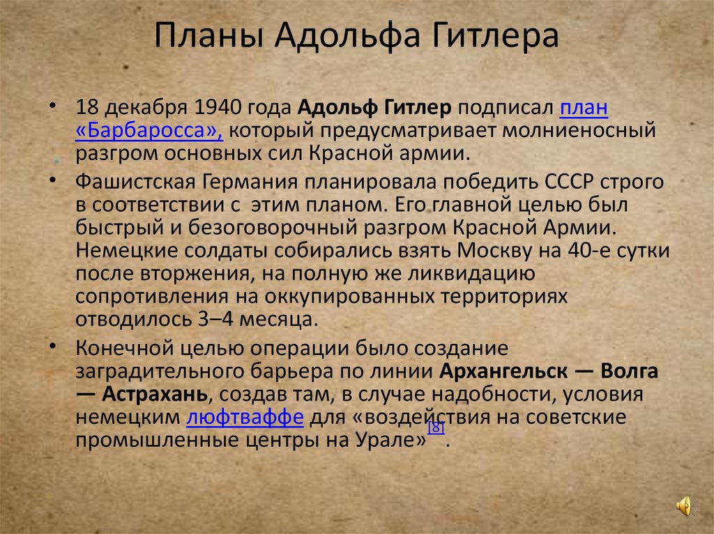 Планы Адольфа Гитлера• 18 декабря 1940 года Адольф Гитлер подписал план