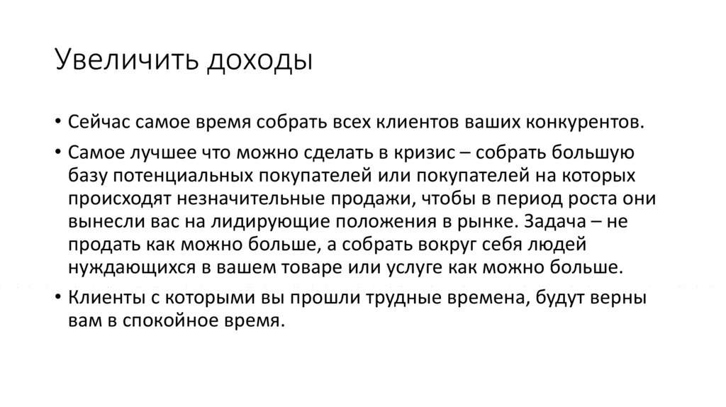 Увеличить доходы• Сейчас самое время собрать всех клиентов ваших конкурентов.