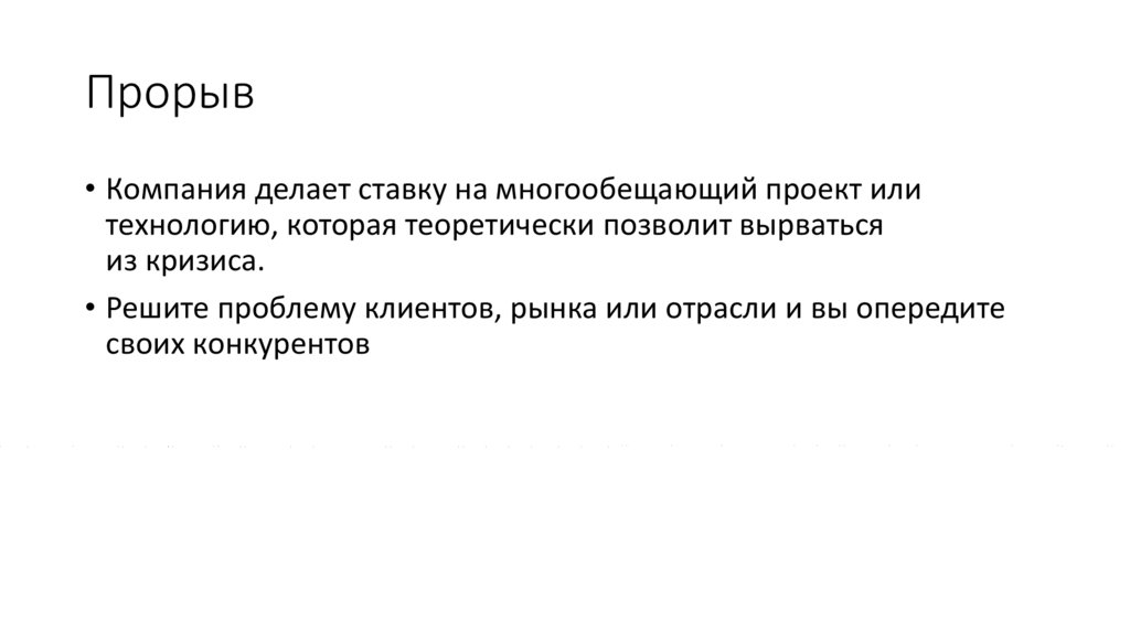 Прорыв• Компания делает ставку на многообещающий проект или
