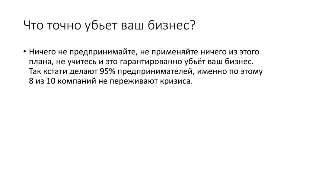 Что точно убьет ваш бизнес?• Ничего не предпринимайте, не применяйте ничего из этого