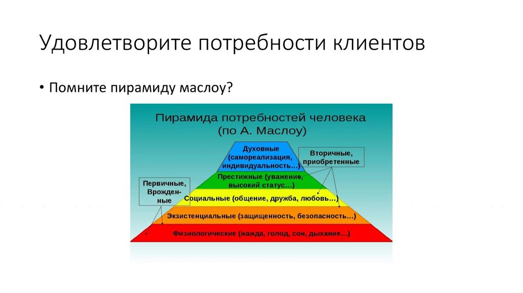 Удовлетворите потребности клиентов• Помните пирамиду маслоу?