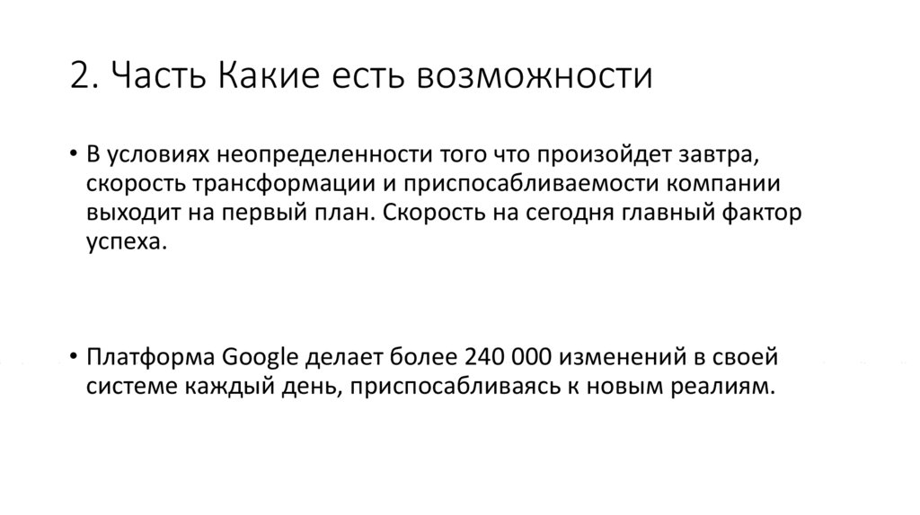 2. Часть Какие есть возможности• В условиях неопределенности того что произойдет завтра,