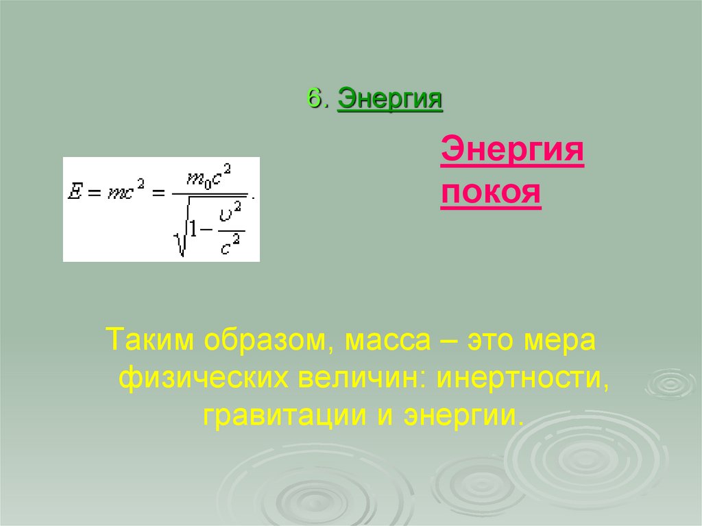 Аналогично энергия покоя частицы E0 связана с ее массой покоя m0