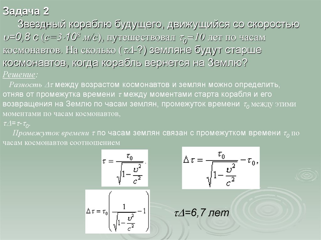 Задача 2Звездный кораблю будущего, движущийся со скоростью