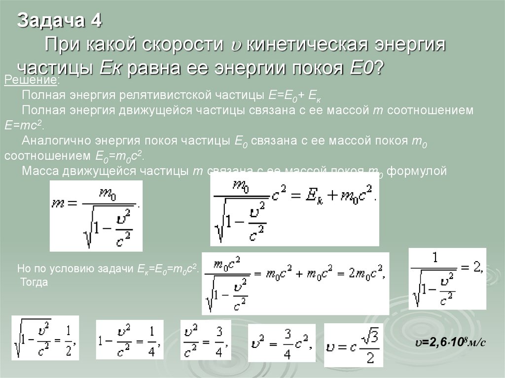 Полная энергия движущейся частицы связана с ее массой m соотношением