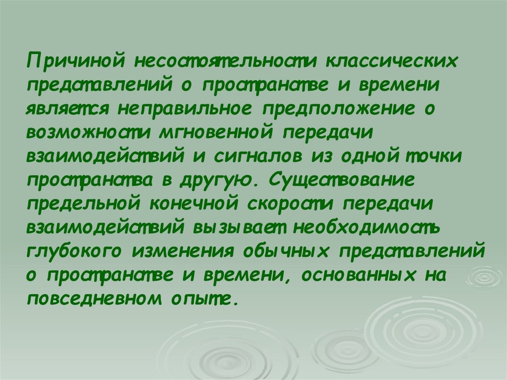 Причиной несост оят ельност и классическихпредст авлений о прост ранст ве и времени