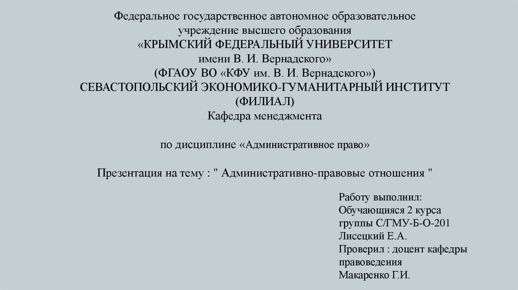 (ФГАОУ ВО «КФУ им. В. И. Вернадского»)