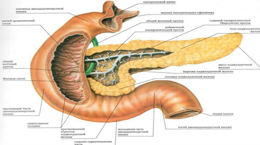 Двенадцатипёрстная кишка, duodenum, - начальныйотдел тонкой кишки, расположенный на задней стенке
