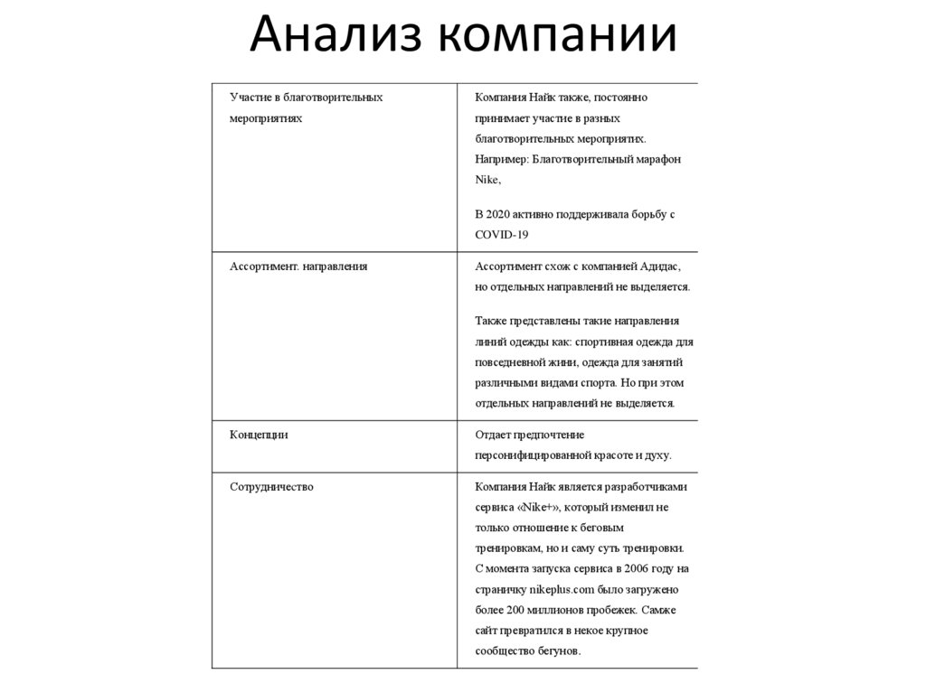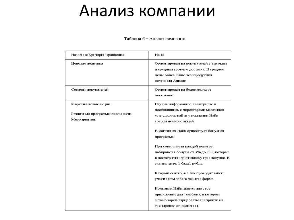 Анализ компанииТаблица 6 ̶ Анализ компании