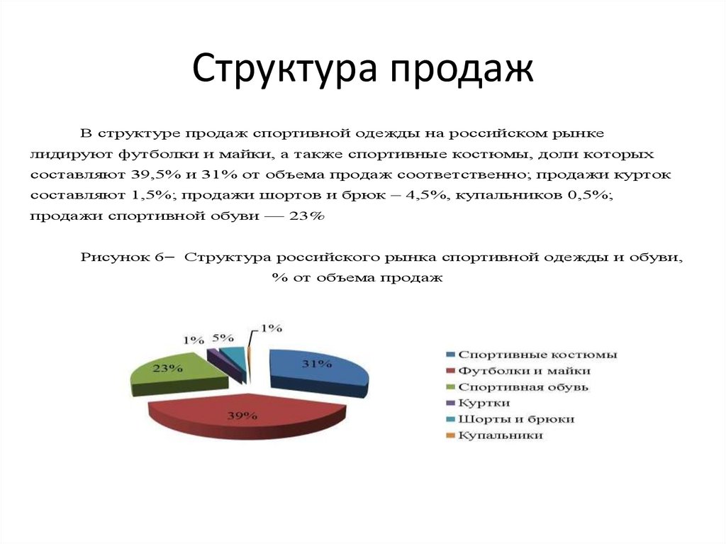 Структура продажВ структуре продаж спортивной одежды на российском рынке