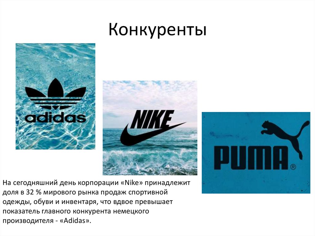 КонкурентыНа сегодняшний день корпорации «Nike» принадлежит