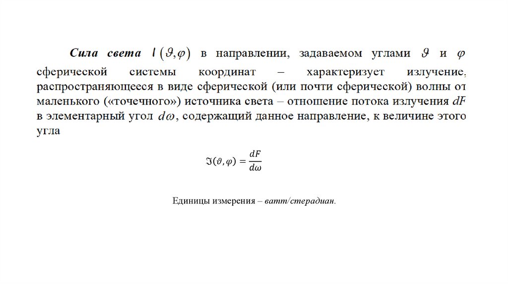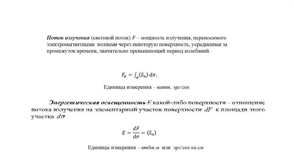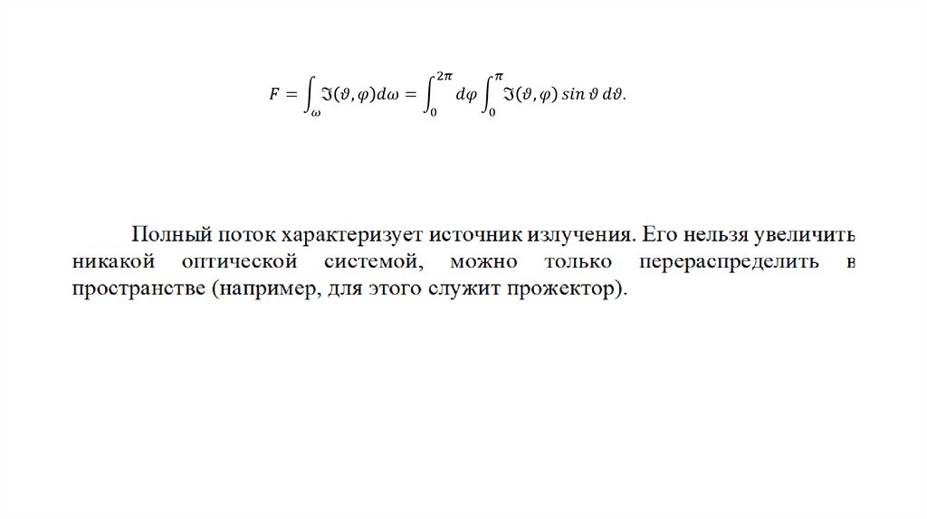 Поток излучения (световой поток) F – мощность излучения, переносимого