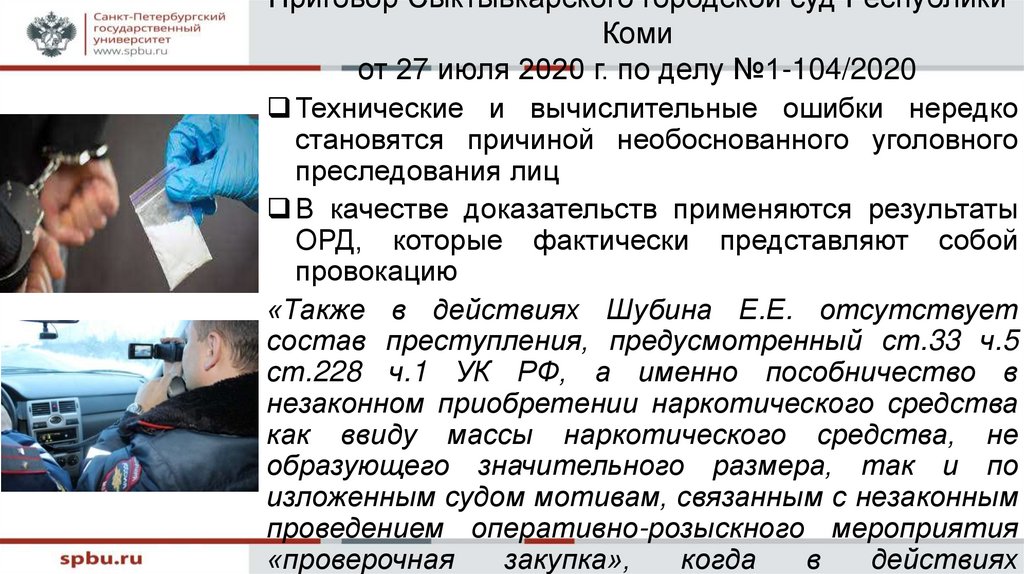 Перейдём к анализу оправдательных приговоров,в рамках вынесения которых суды обнаружили,