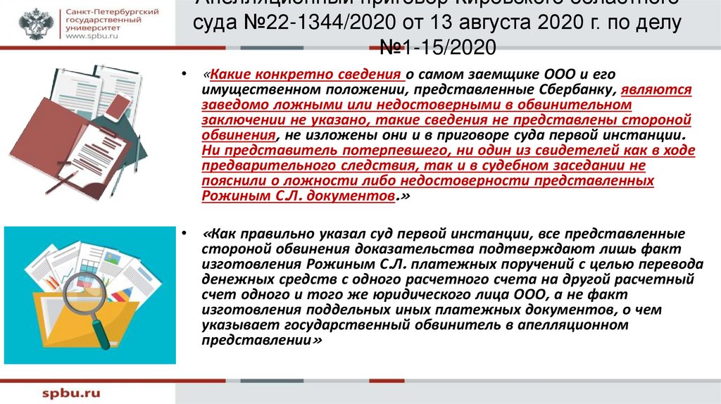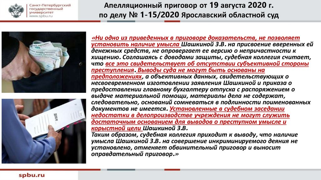 • «Ни одно из приведенных в приговоре доказательств, не позволяет
