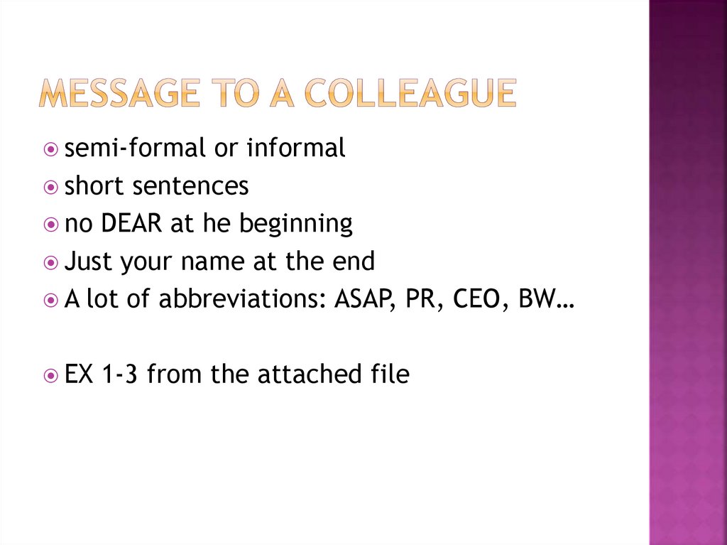 A lot of abbreviations: ASAP, PR, CEO, BW…
