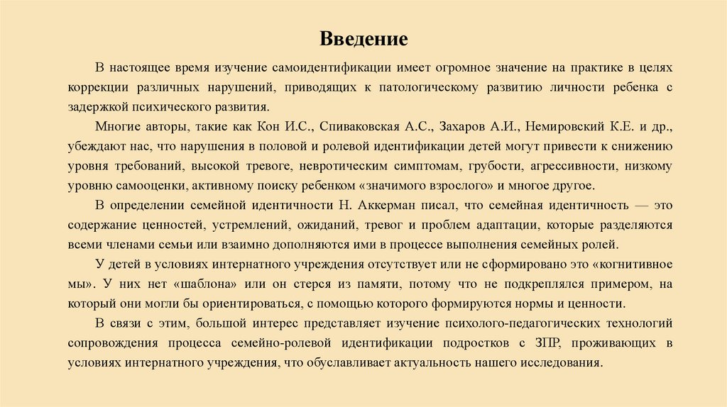 Предмет: семейно-ролевая идентификация у подростков с задержкой психического развития,