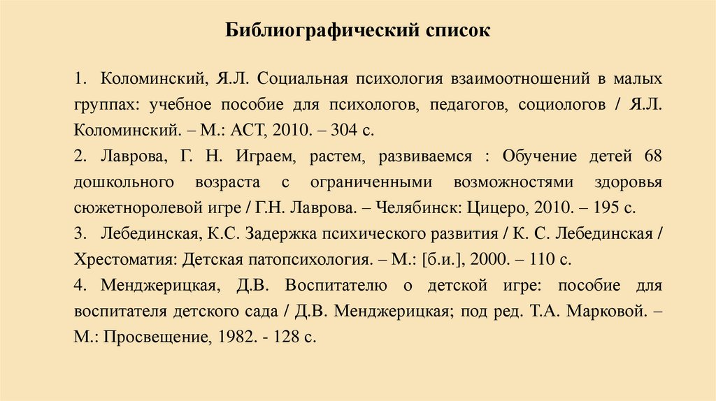 Библиографический список1. Коломинский, Я.Л. Социальная психология взаимоотношений в малых