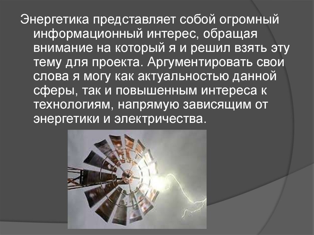 Энергетика представляет собой огромныйинформационный интерес, обращая