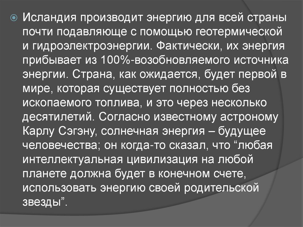 Карлу Сэгэну, солнечная энергия – будущее
