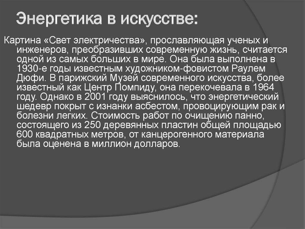 шедевр покрыт с изнанки асбестом, провоцирующим рак и