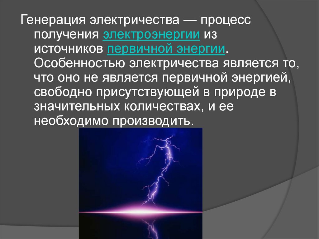 Генерация электричества — процессполучения электроэнергии из