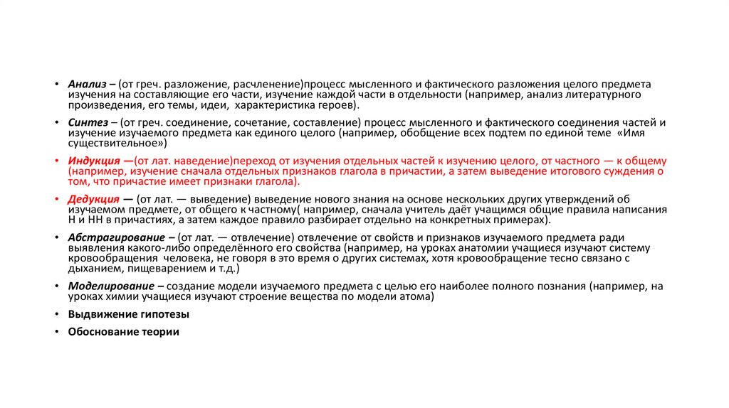 • Анализ – (от греч. разложение, расчленение)процесс мысленного и фактического разложения целого предметаизучения на составляющие его части, изучение каждой части в отдельности (например, анализ литературного