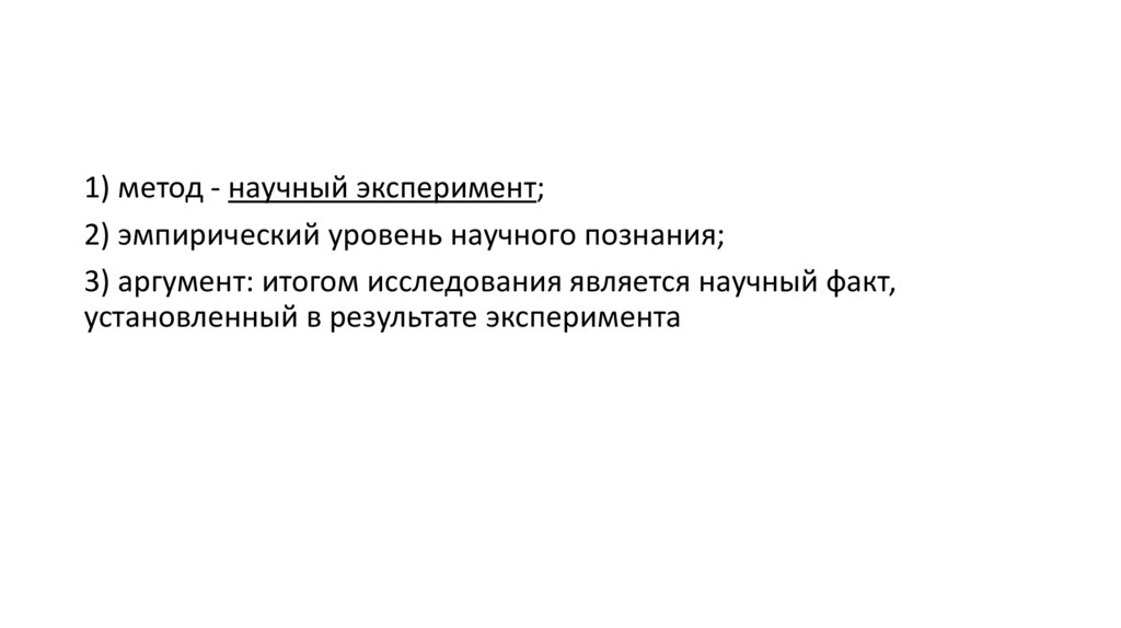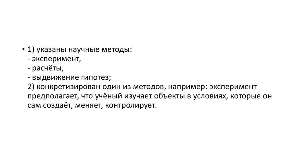 • 1) указаны научные методы:- эксперимент,