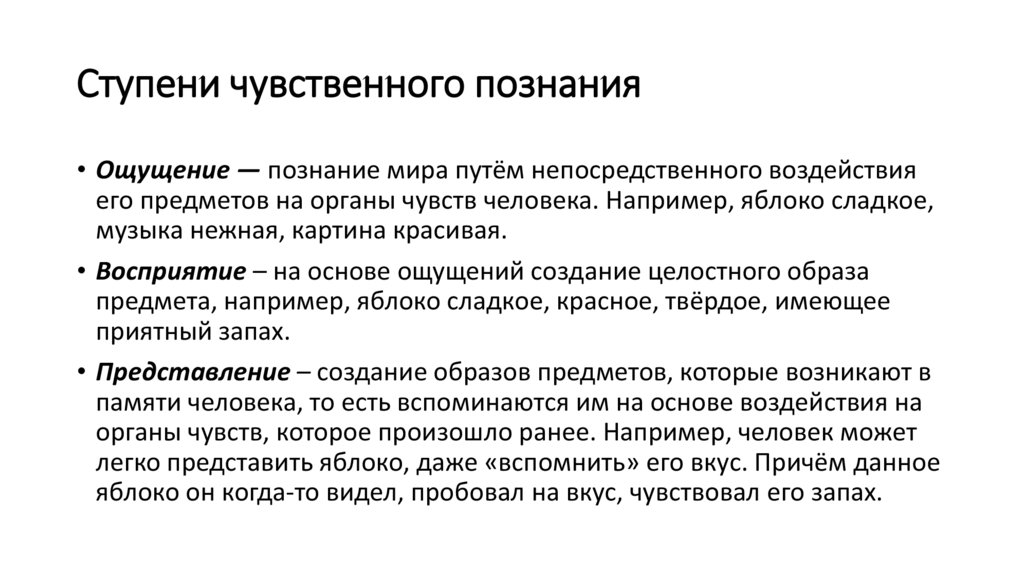 его предметов на органы чувств человека. Например, яблоко сладкое,