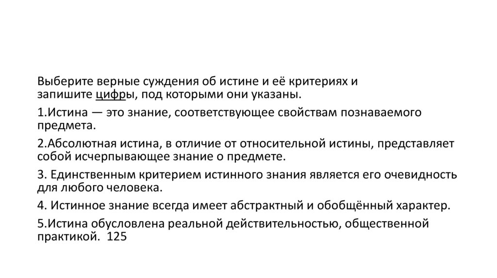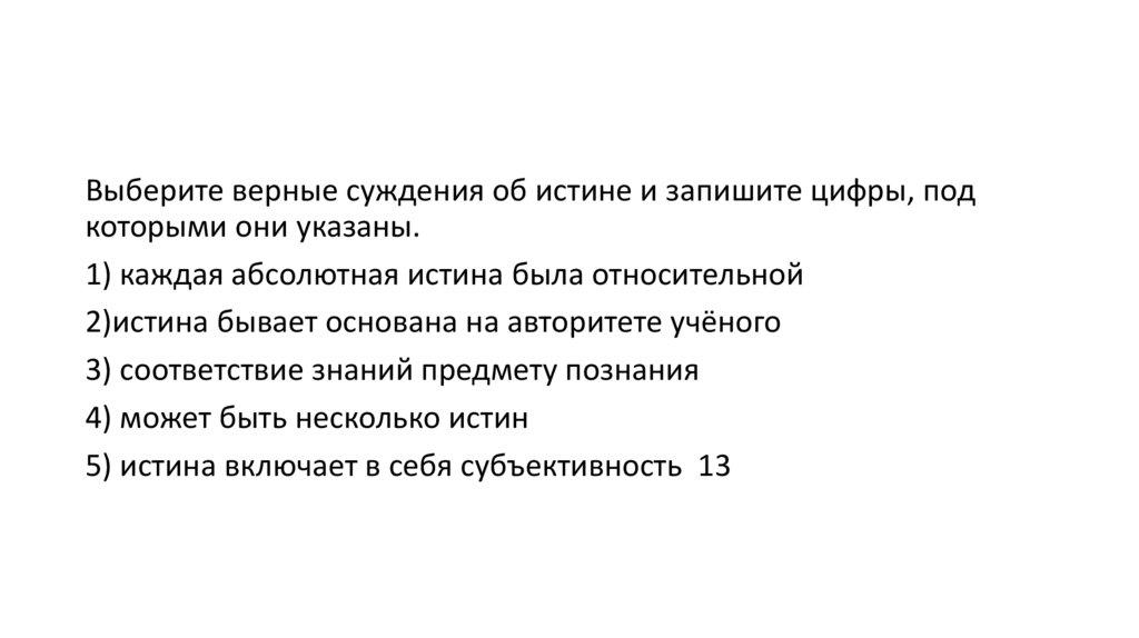• Абсолютная истина — это полное, исчерпывающее знание человека о чём-либо.